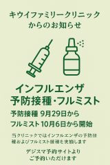 2025年度のインフルエンザワクチンは9月13日からインターネット予約が開始となっています(デジスマよりご予約をお願い致します)。
